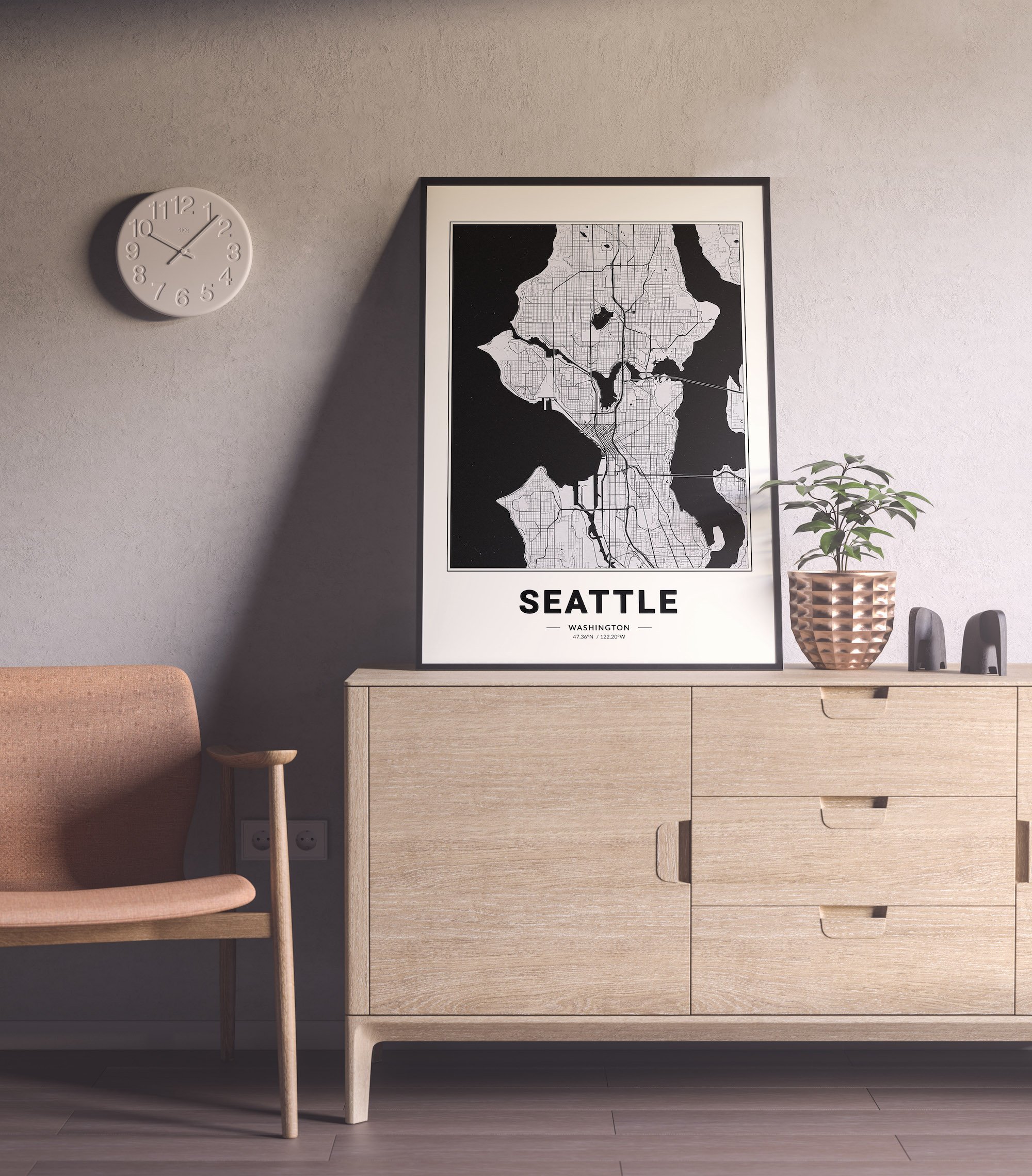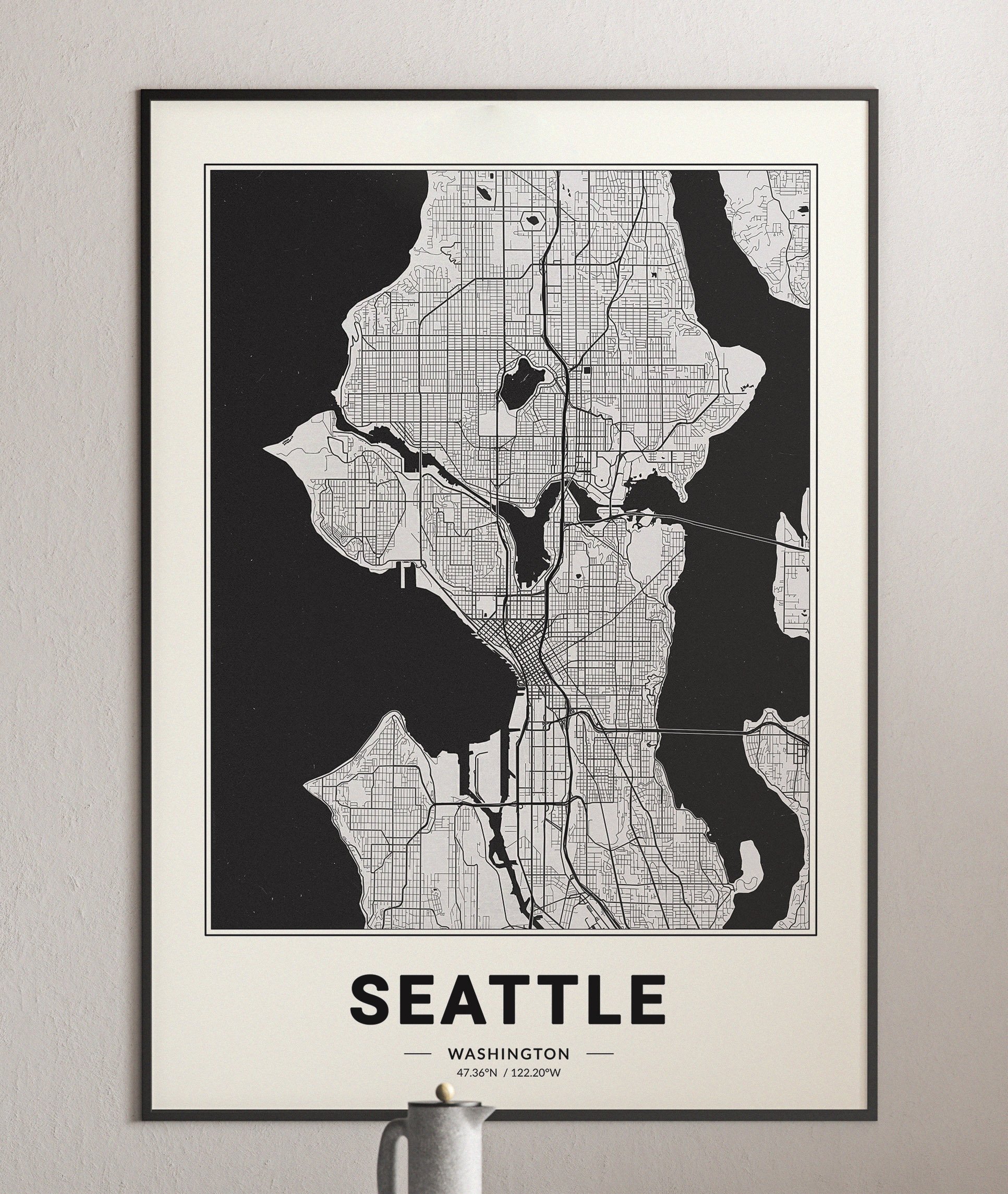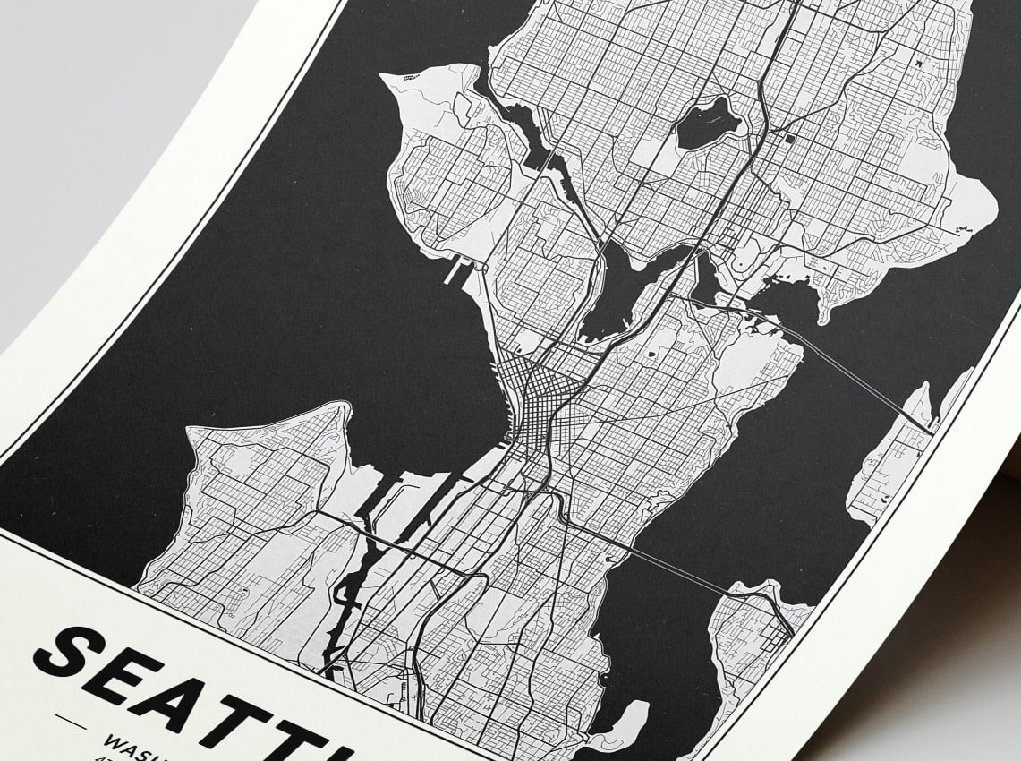 Seattle Map - Minimalist Modern Black and White USA City Map Poster